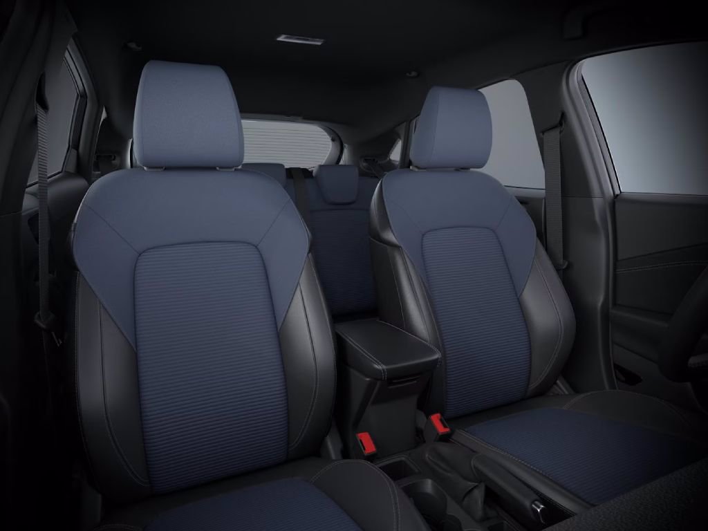 - Sedili in vinile nero con impunture blu ed inserti in tessuto nordic blue