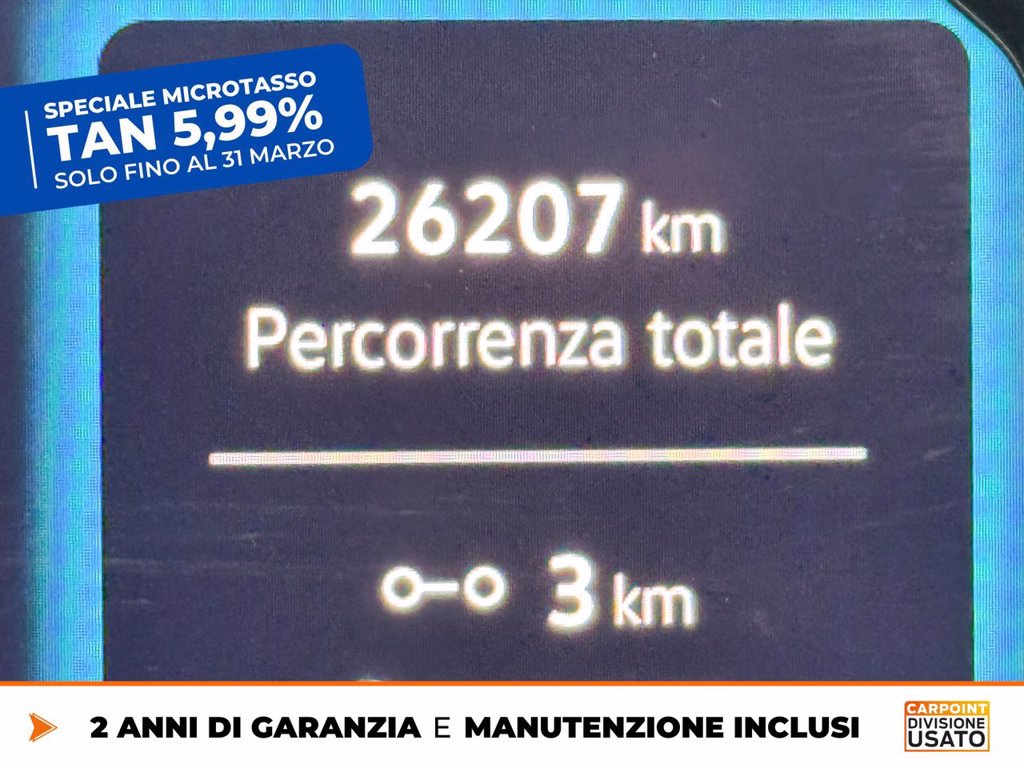 Prezzo in contanti senza finanziamento € 30.420. Offerta valida dal 01/03/2026 al 31/03/2026 a fronte di acquisto con finanziamento con una delle soluzioni finanziarie disponibili offerte da Carpoint. Salvo approvazione. Spese accessorie e passaggio di proprietà escluse. Salvo errori ed omissioni.